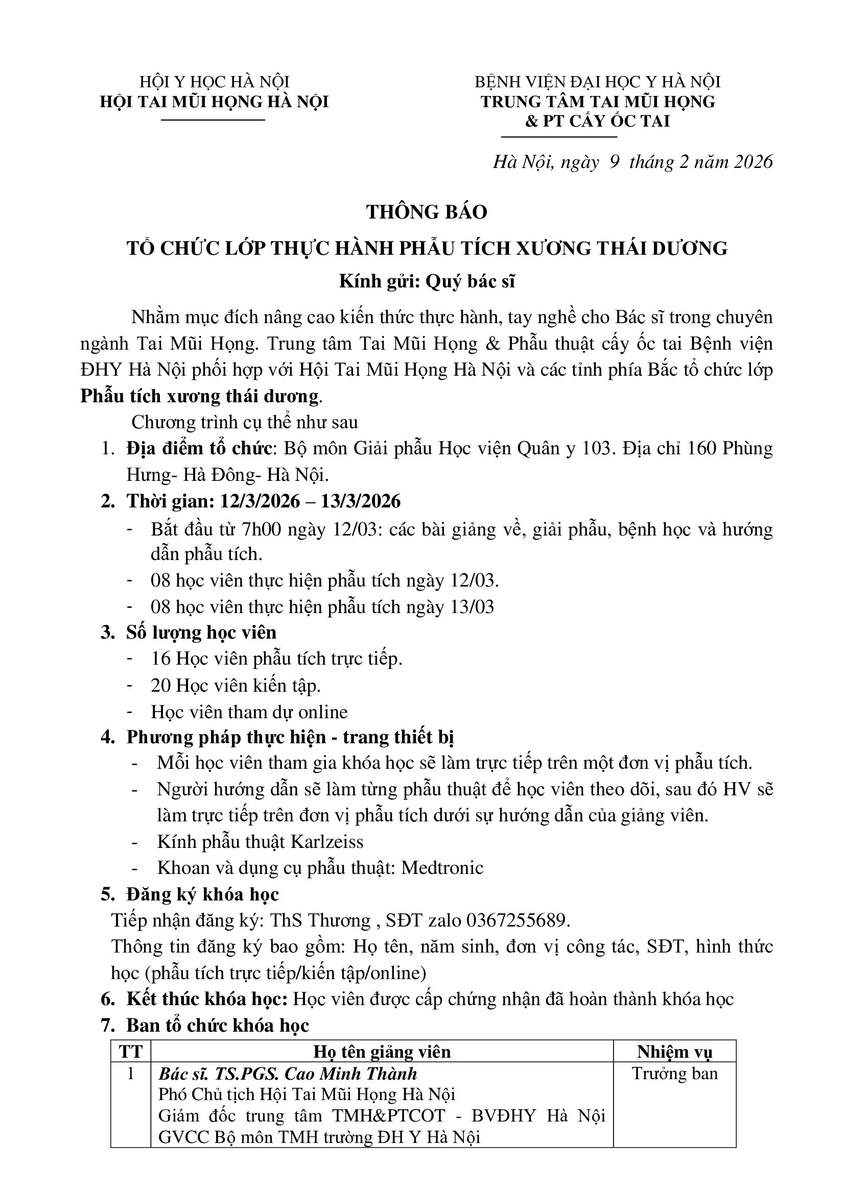 THÔNG BÁO SỐ 3 HỘI NGHỊ KHOA HỌC THƯỜNG NIÊN HỘI TAI MŨI HỌNG HÀ NỘI VÀ CÁC TỈNH PHÍA BẮC NĂM 2025