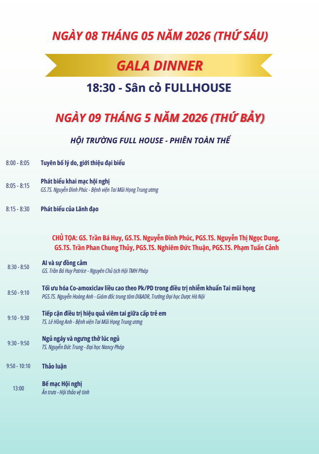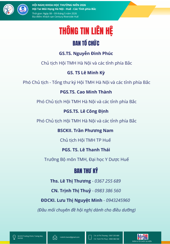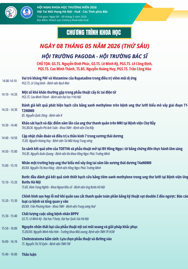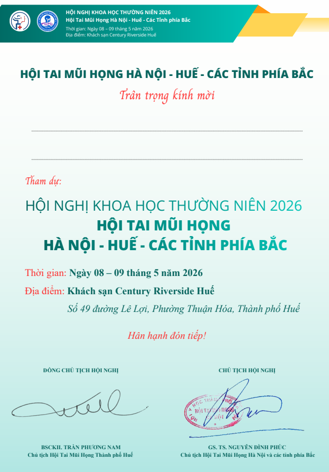 Thư mời Hội nghị Khoa học thường niên 2026 Hội Tai Mũi Họng Hà Nội - Huế - Các tỉnh phía Bắc Ngày: 18/04/2026